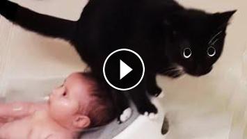 A funny baby and cats from @We laugh :