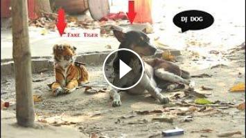 Fake Tiger Prank Dog So Funny - Try To Stop Laugh All Challenge Fake Tiger Prank Real Dog