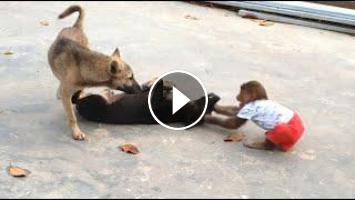 Funny animals abu | Monkey and dog funny video