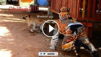 Try to not laugh challenge fake tiger prank dog it is funny run!!!, Do you love monkey animal please looking my channel video more