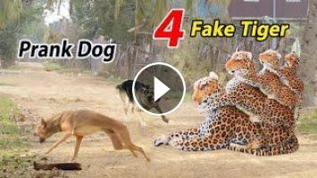 Fake Tiger Prank Dog So Funny - Try To Stop Laugh All Challenge Fake Tiger Prank Real Dog